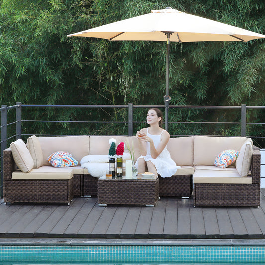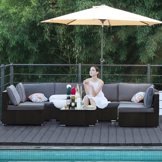 Navy Blue Cushion Rattan Sofa 7 Piece Set