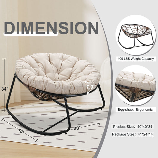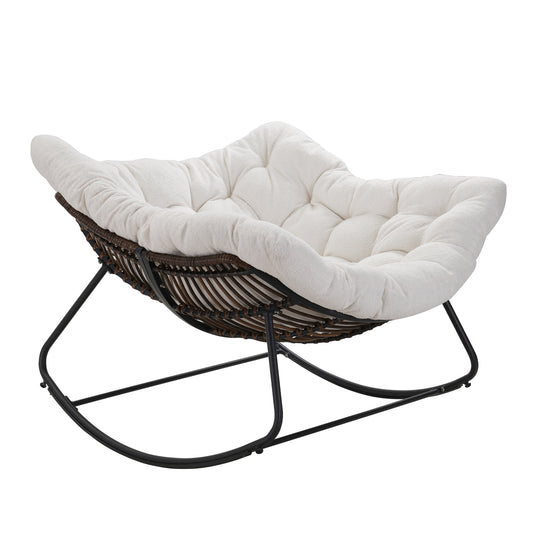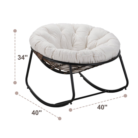 Dark Gray Iron Frame Beige Cushioned Rattan Rocking Chair