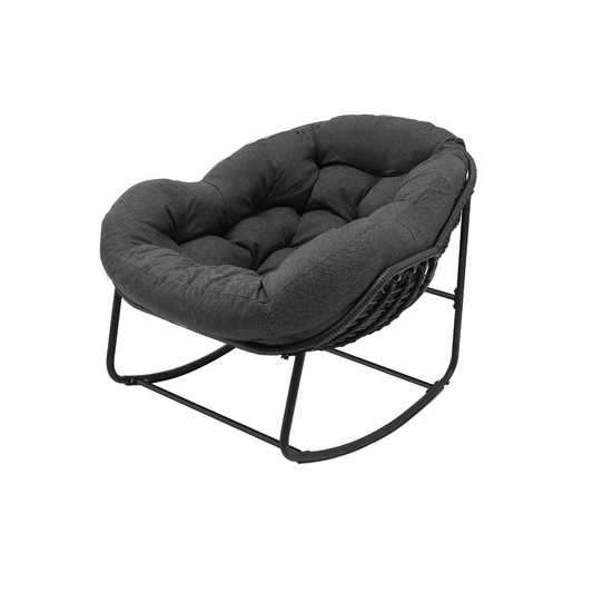 Dark Gray Iron Frame Gray Cushion Wicker Rocking Chair