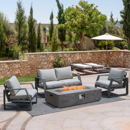 Dalicia 57" Outdoor Rectangular Rattan Propane Gas Fire Pit Table for Outside Patio