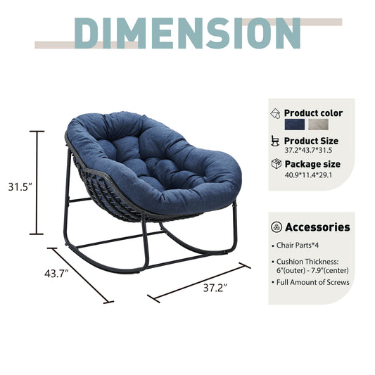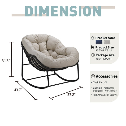 White Iron Frame Light Gray Cushioned Wicker Rocking Chair