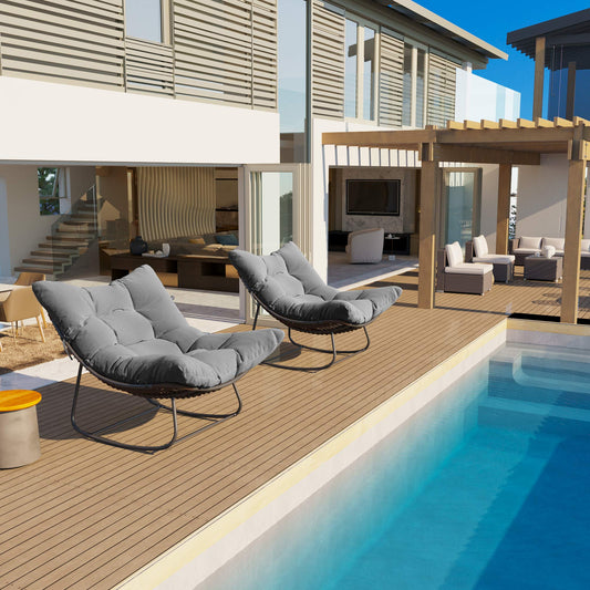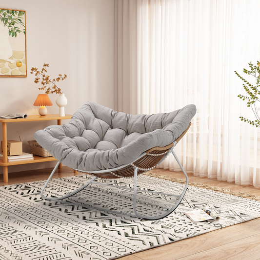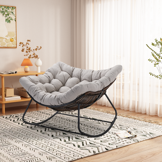 Oversized Papasan Rocking Chair – Ultra-Comfort Rocker with Plush Cushion & 30° Smooth Swing for Patio, Porch & Living Room