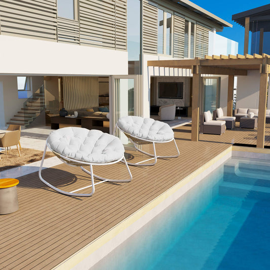 White Iron Frame Rocking Chair with Bamboo Fabric & Teddy Velvet Seat Cushion – Luxe Oversized Papasan Chair for Indoor/Outdoor