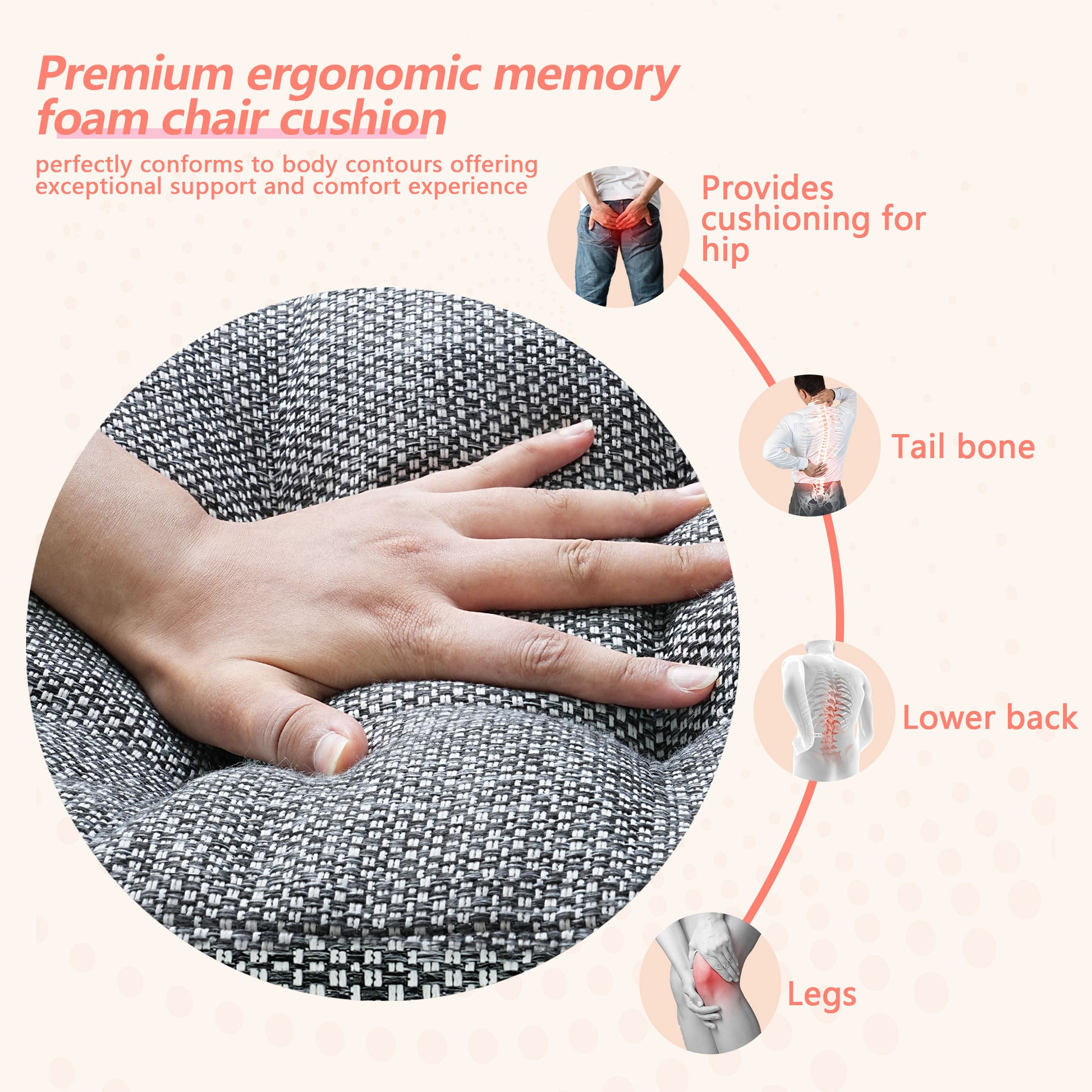 【2" Thickened Memory Foam】The interior is an integrated 30D high elastic sponge, Excellent support to protect your lumbar spine, distribute the pressure, reducing pain and fatigue in your waist, hips, tailbone.reach a relaxing sitting experience.