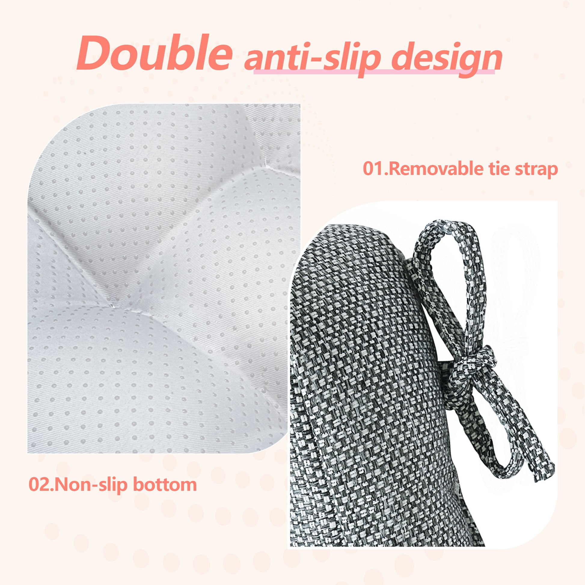 【Double Non-slip Design】 Our seat cushion features with adjustable straps attached to the chairs back, to keep the cushions stand out in place whether you are moving or rocking the chairs. Non-slip gel particles layer bottom provide extra traction to ensure the cushions will not move around when you are sitting.