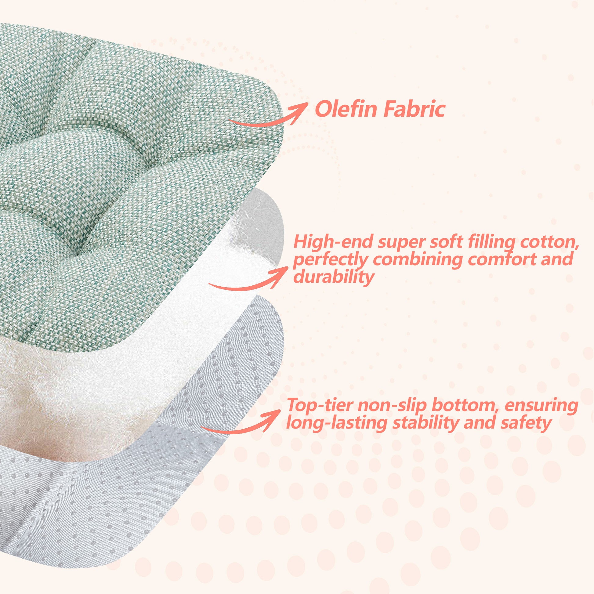 【Double Non-slip Design】 Our seat cushion features with adjustable straps attached to the chairs back, to keep the cushions stand out in place whether you are moving or rocking the chairs. Non-slip gel particles layer bottom provide extra traction to ensure the cushions will not move around when you are sitting.