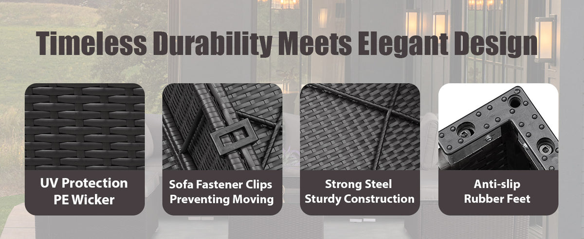 Handwoven Rattan & amp; Rust-Resistant Steel Frame: Crafted with skillfully woven premium rattan over a sturdy, rust-resistant steel frame, this wicker patio set stands up to sun, rain, and wind with ease. Designed for year-round outdoor use, it’s an ideal sectional sofa for the patio, deck, backyard, or garden.