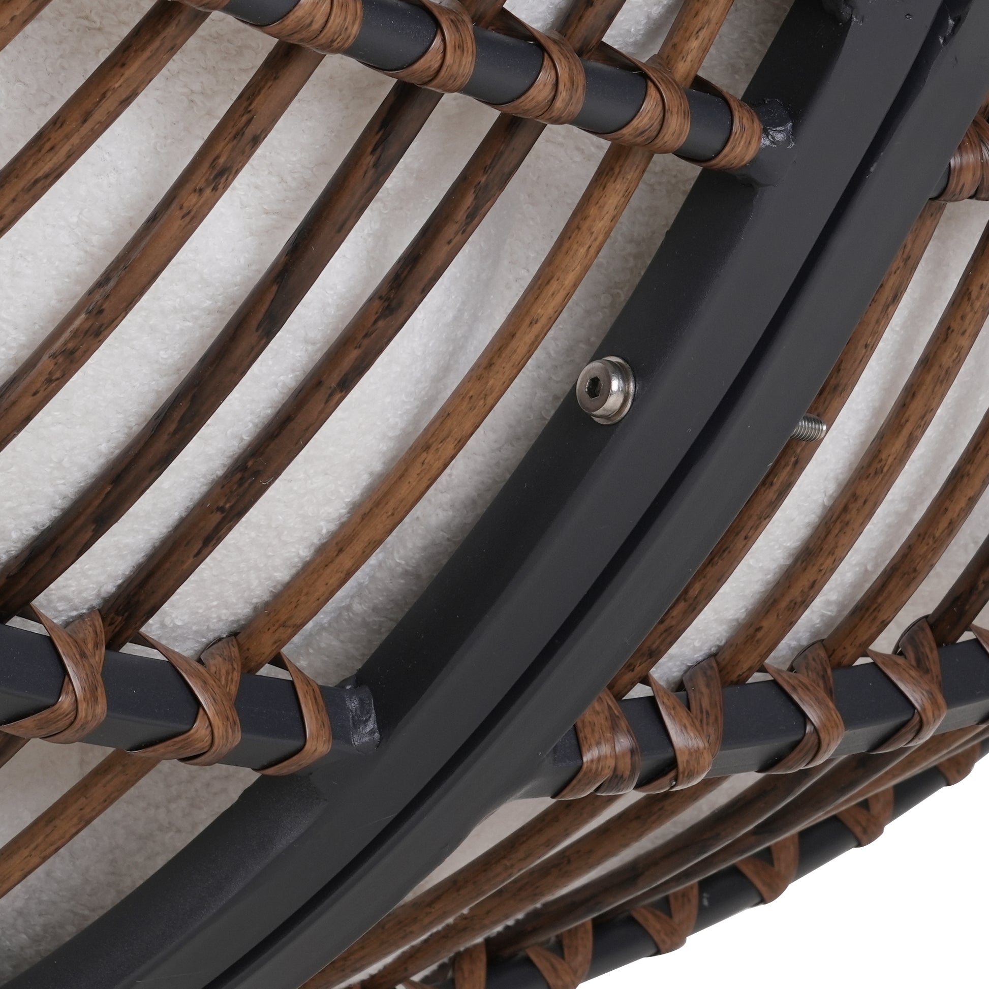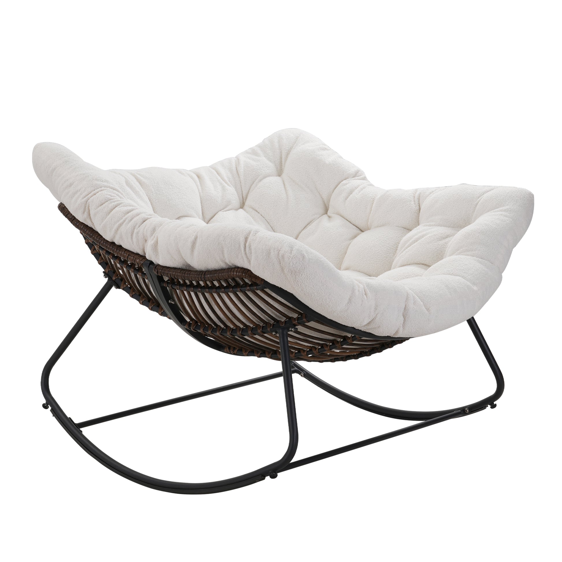 Dark Gray Iron Frame White Cushioned Rattan Rocking Chair