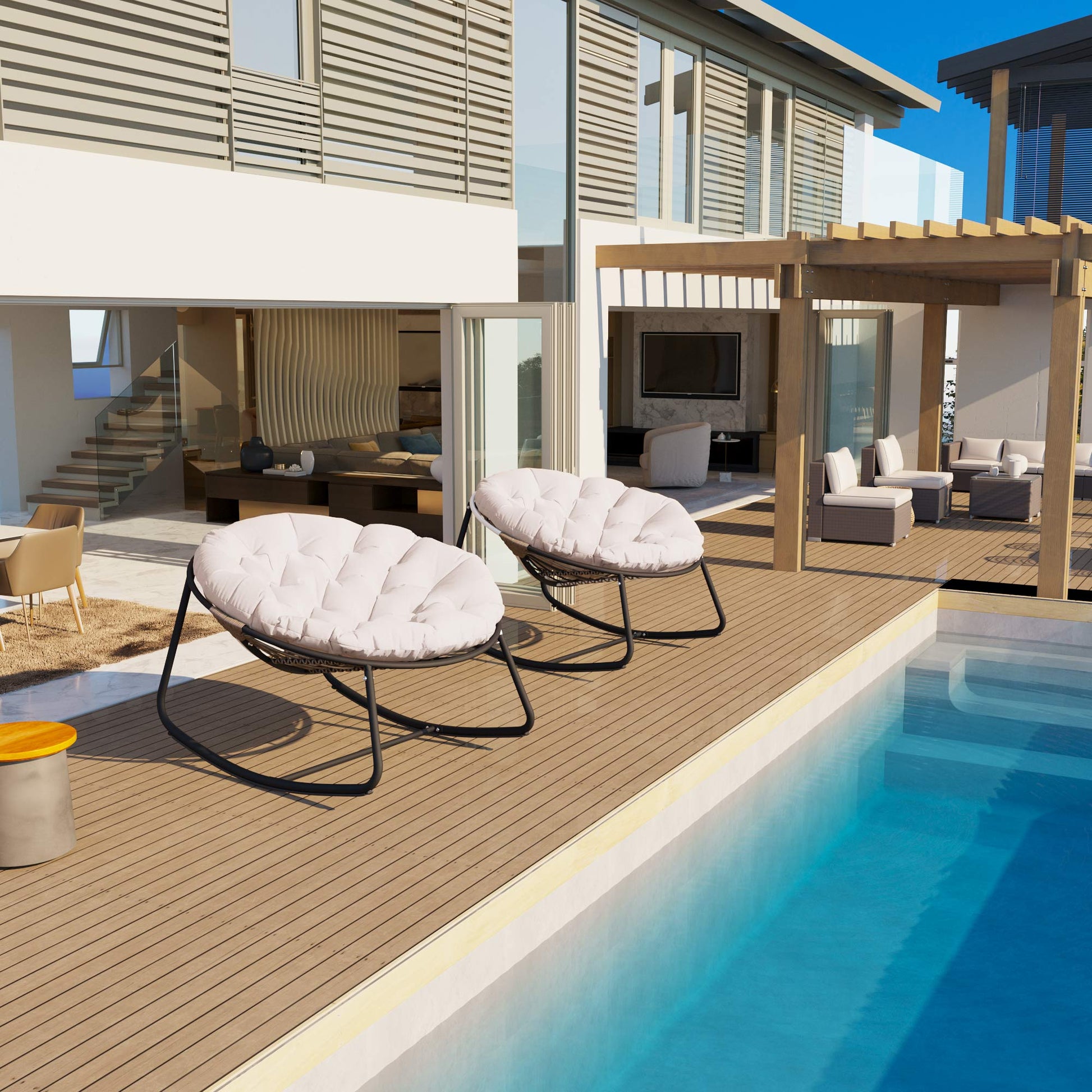 Your Ultimate Comfort Haven! Looking for a rocking chair that offers unparalleled comfort and durability? Look no further! Our Rocking Chair is designed with the utmost care to provide you with a heavenly seating experience. With its seat cushion made of spun polyester fiber, this chair boasts exceptional moisture resistance, fade resistance, wear resistance. It's built to withstand the test of time, so you can enjoy countless hours of relaxation without worrying about wear and tear. When you sink into this chair, it's like being cradled in the womb. The feeling of ultimate comfort and serenity will wash over you, transporting you to a world of tranquility. Whether you want to read a book, unwind after a long day, or simply enjoy the beauty of nature, our Rocking Chair is the perfect companion.
