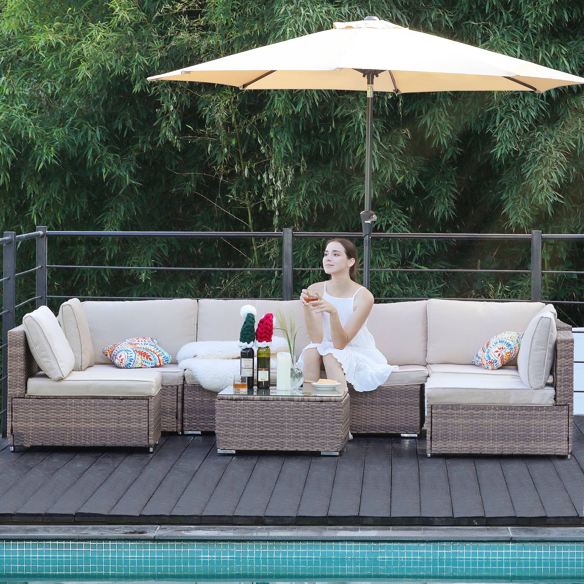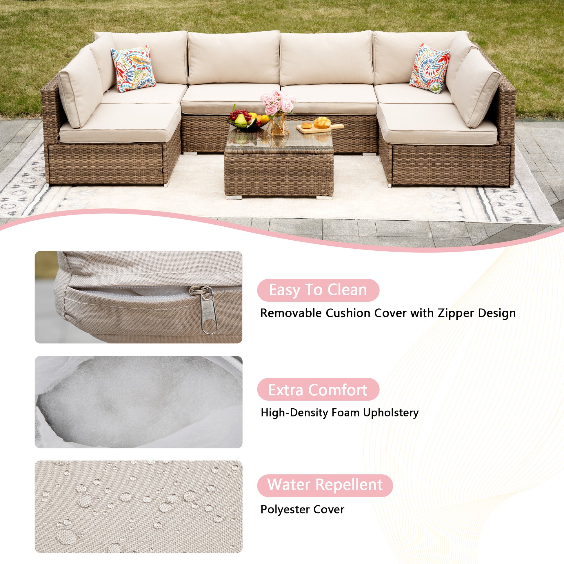 - Enjoy outdoor leisure: Our 7 pieces outdoor furniture set is a musthave for relaxing afternoons in your backyard. Crafted with high-quality rattan, this set seamlessly blends with nature, allowing you and your friends to have a delightful time outdoors.