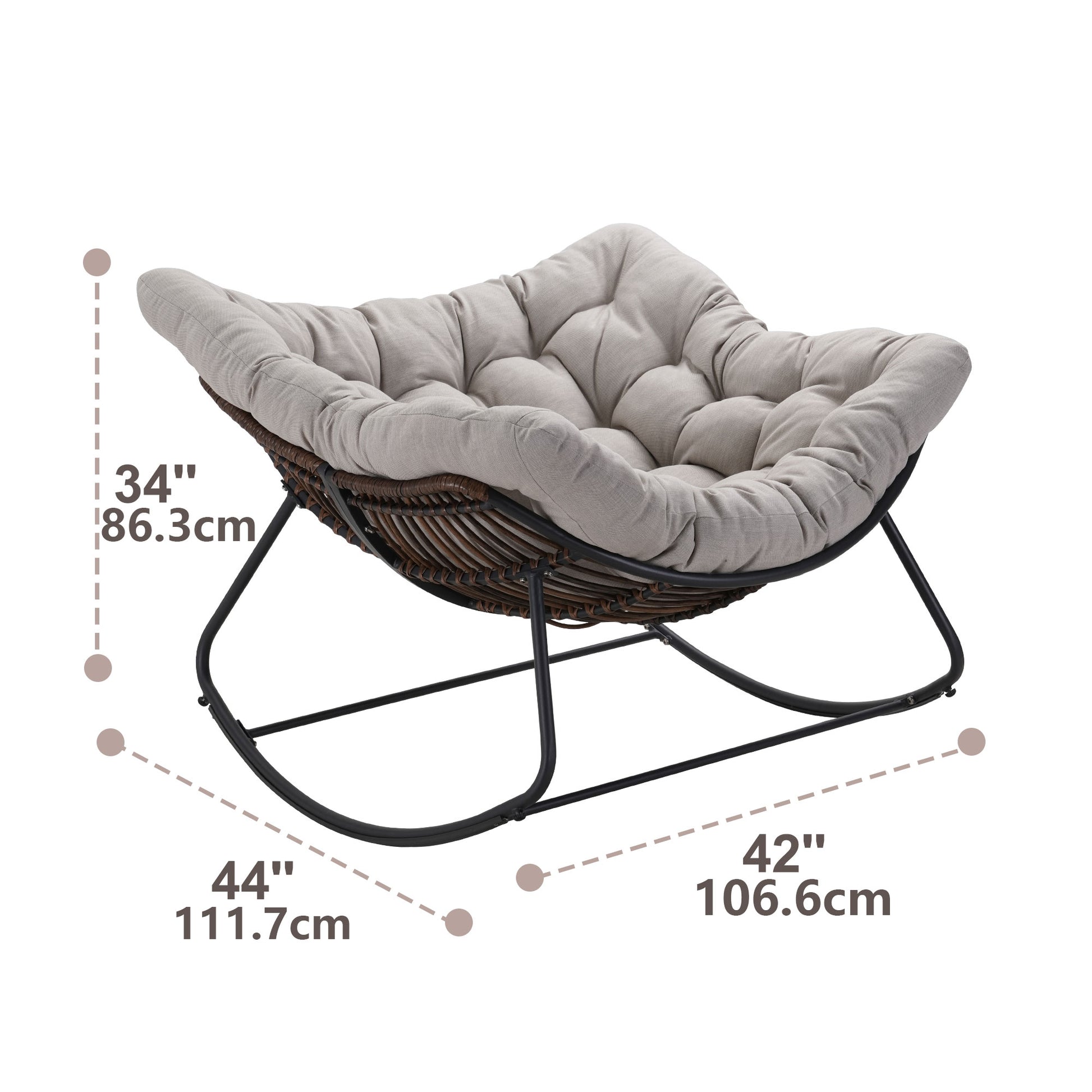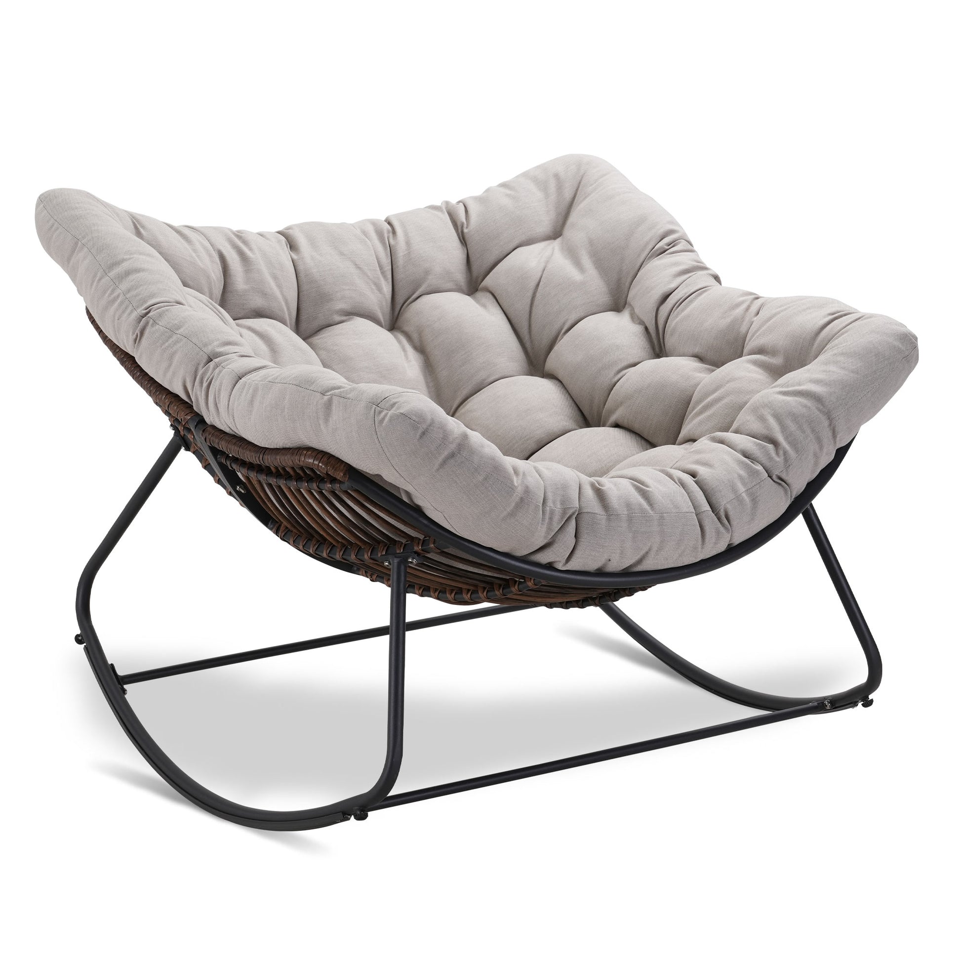 Dark Gray Iron Frame Gray Cushion Wicker Rocking Chair