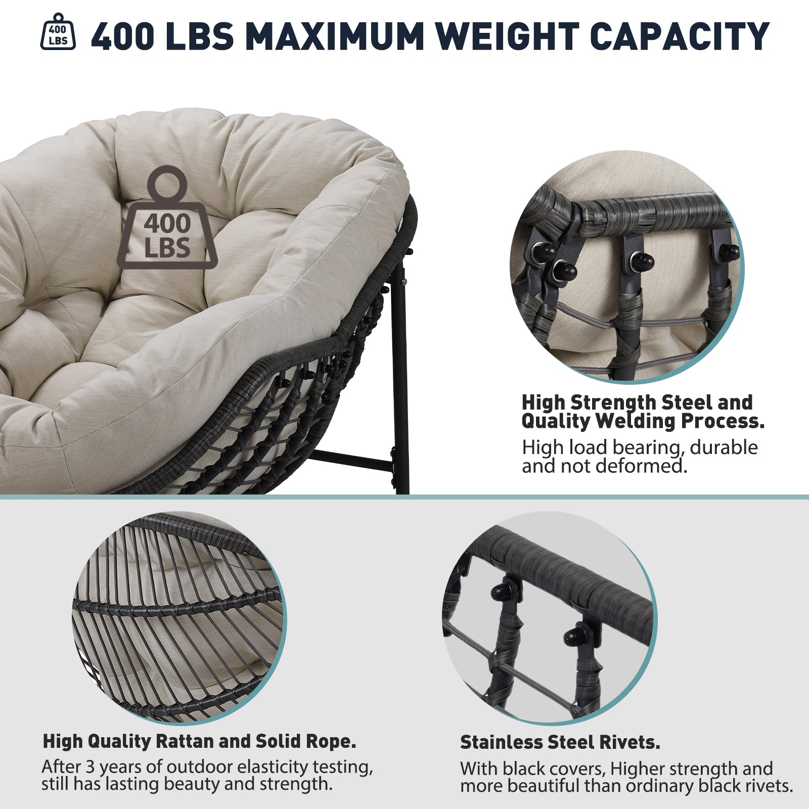 - Design: This chair is equipped with thick soft cushion, the steel frame of woven rattan is more durable, it will love your back and shape your body shape, the bottom can protect the floor and reduce noise.