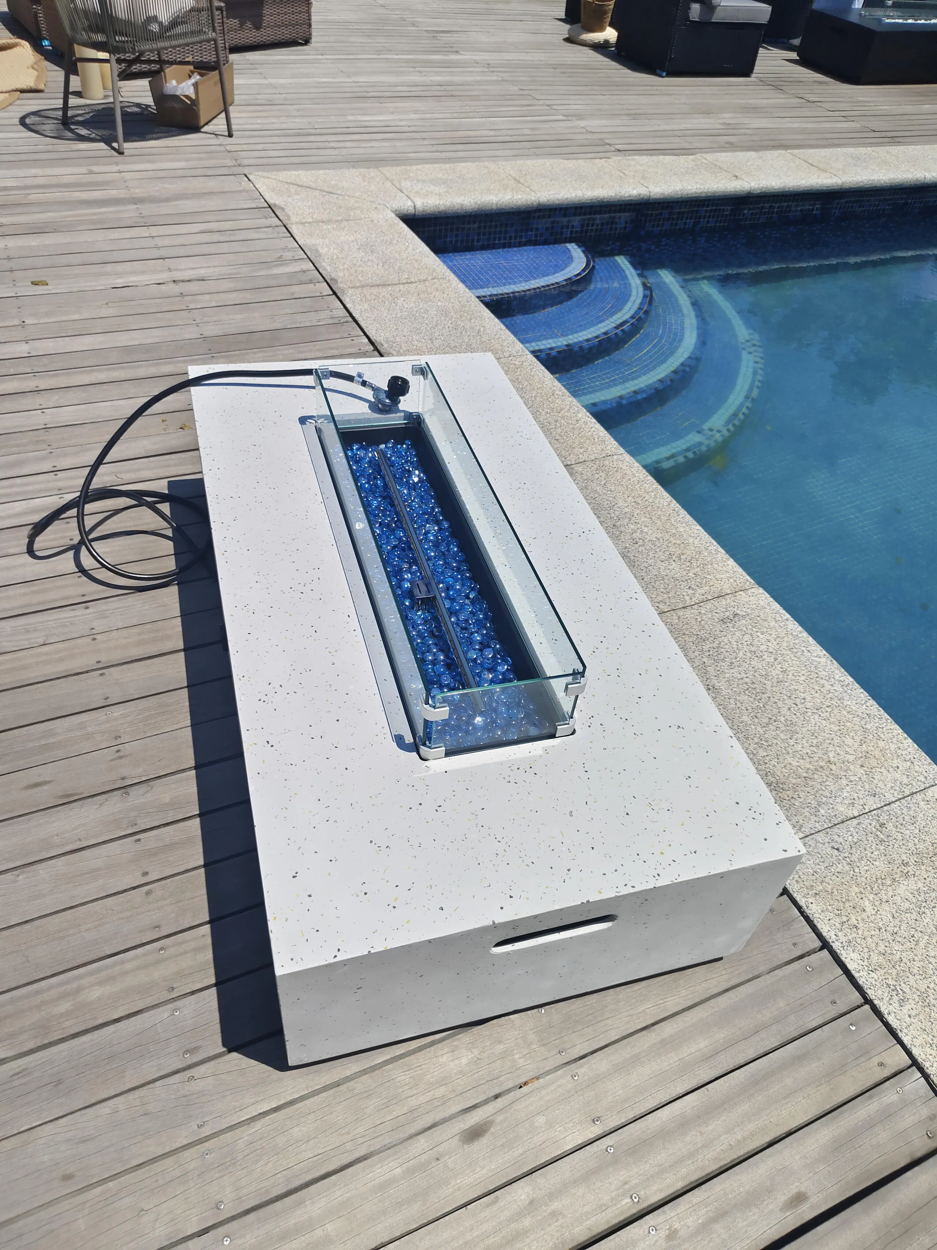 Sophisticated Aesthetics for Outdoor Decor: With its modern rectangular design and elegant terrazzo-inspired finish, this fire table serves as a stunning centerpiece that complements any outdoor setting—from contemporary patios to traditional garden spaces.
